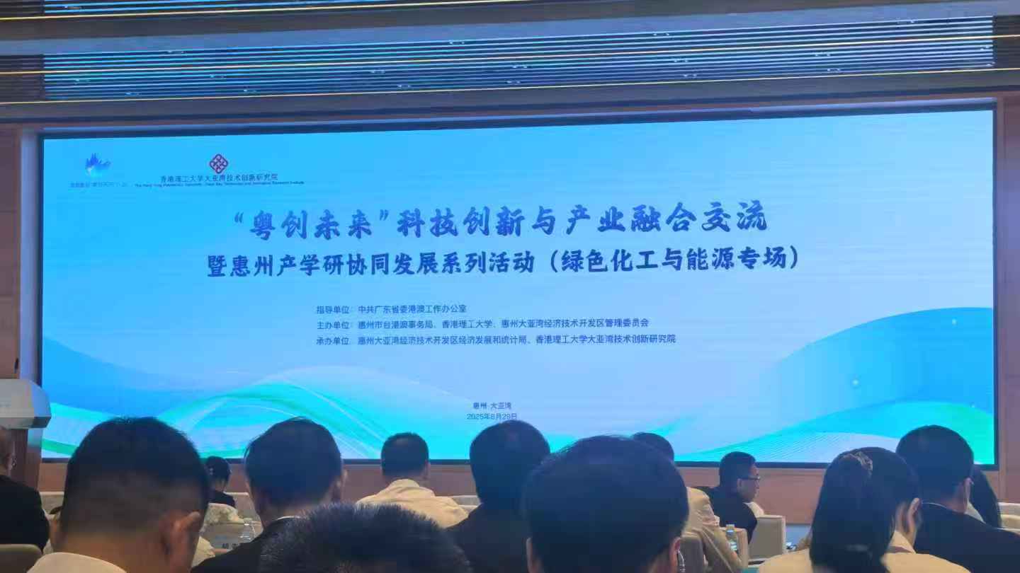 2025年8月29日,由惠州市台港澳事务局、香港理工大学、惠州大亚湾经济技术开发区管理委员会联合主办的 “粤创未来”科技创新与产业融合交流暨惠州产学研协同发展系列活动(绿色化工与能源专场)在惠州大亚湾华润学习与创新中心隆重举行!