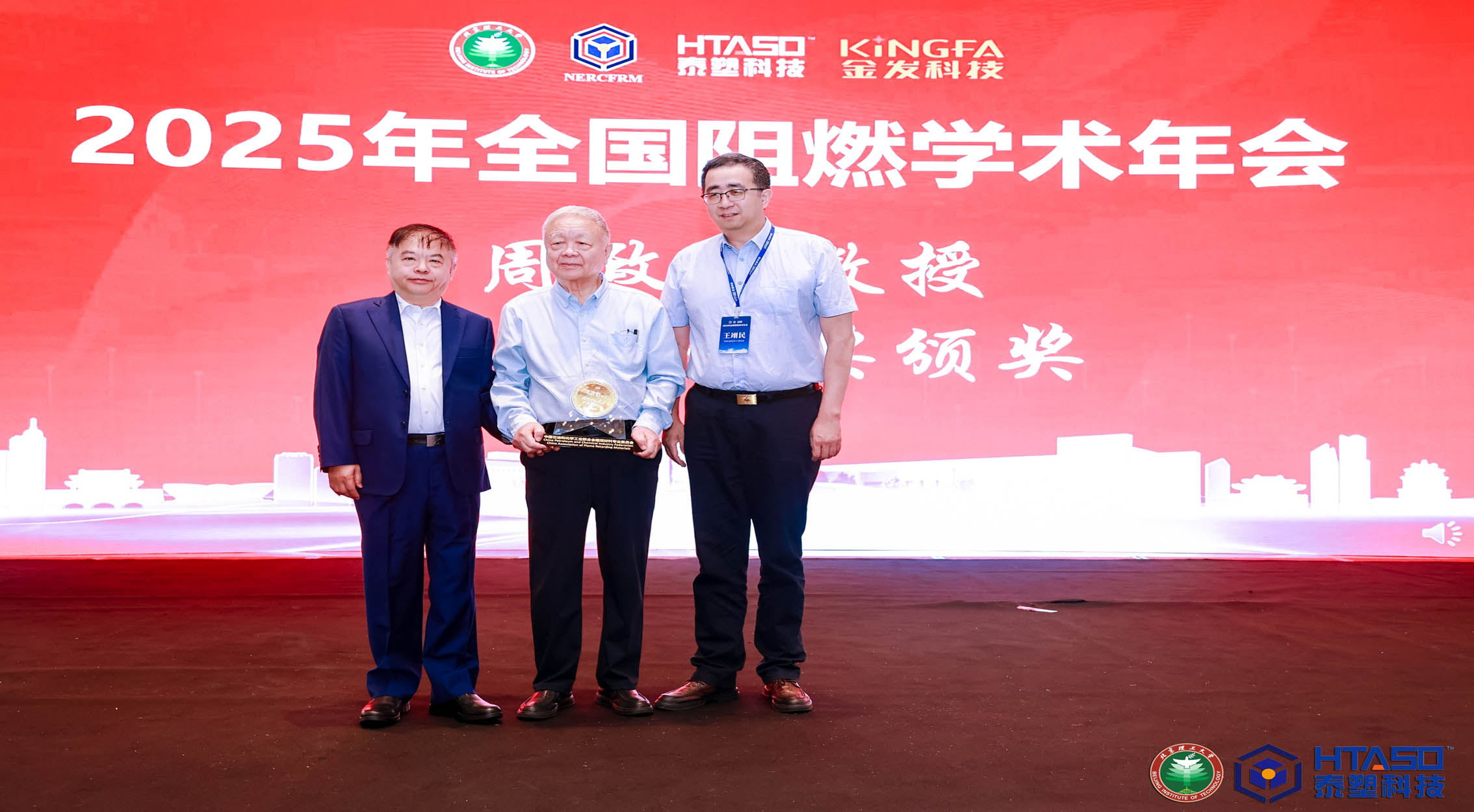 本届年会的特别环节是对周政懋教授的致敬仪式。作为中国阻燃学会的创始成员之一,周教授在过去三十余年中参与完成了多项国家及行业标准的制定,培养了大批专业人才,为我国阻燃事业的发展作出了巨大的贡献,其主编的《防火涂料》至今仍是行业经典教材。82岁高龄的周教授深耕行业60载,他的专业精神一直激励着我们tyc234cc 太阳成集团科技不断进取。本次大会特别授予其"阻燃材料行业终身贡献奖",以表彰他的功勋卓著。